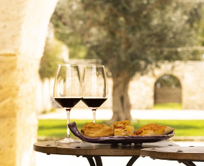 Goditi un autentico e indimenticabile viaggio enogastronomico situata nel cuore della Puglia. Questa esperienza unica inizia con una visita guidata al vigneto, dove conoscerai la storia della tenuta e il suo impegno per una viticoltura sostenibile.